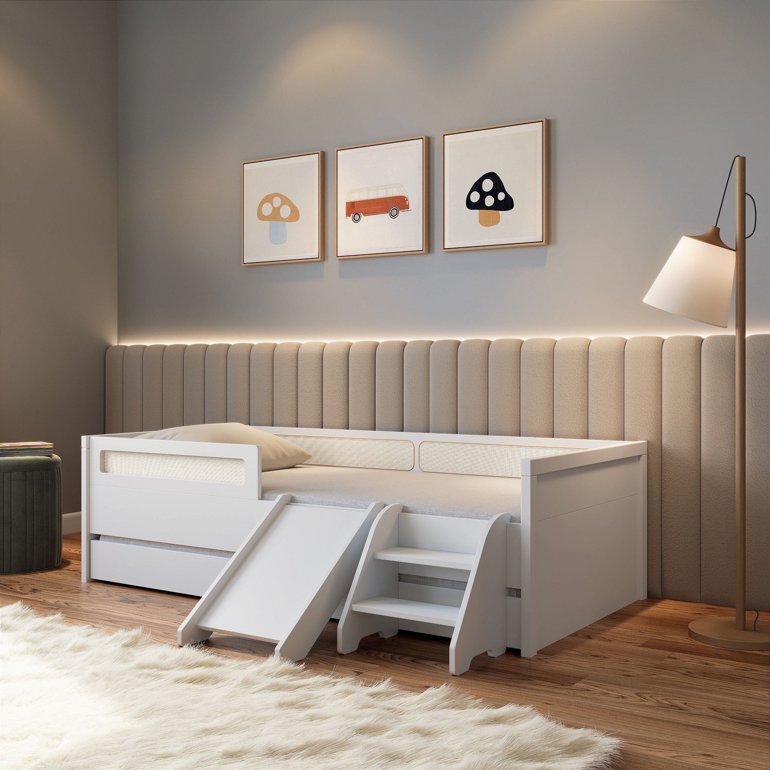 A Cama Montessoriana com Casinha, Escadinha e Escorregador da Coleção Divertidamente foi desenvolvida para transformar o quarto infantil em um verdadeiro refúgio de diversão, conforto e autonomia. Inspirada na metodologia Montessori, ela incentiva o desenvolvimento da criança de forma lúdica e segura, tornando cada dia uma nova aventura.