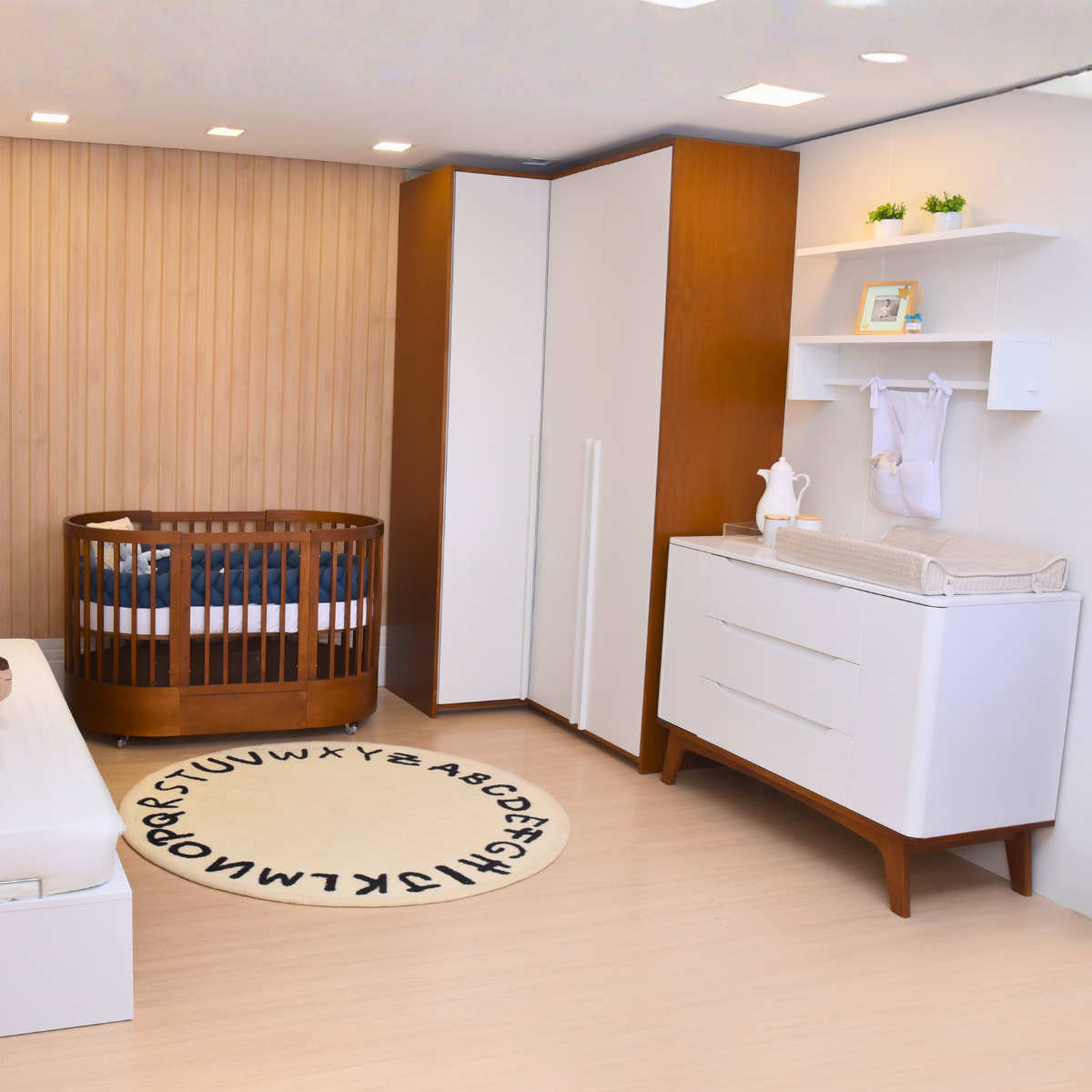 Uma combinação elegante e inteligente para quem deseja mobiliar o quarto do bebê com qualidade e estilo. O Berço Wave Mel e a Cômoda Sambalelê Branco com Mel são fabricados pela Divicar em MDF de alta densidade, com acabamento impecável, cantos arredondados e pintura atóxica para máxima segurança do bebê.